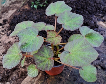 De grandes feuilles à reflets vert, rouge et argenté, un port bambusiforme à tige épaisse, voici un Begonia très original. Sa culture facile si vous ne l’arrosez pas trop (laissez sécher la terre avant de ré-arroser). Garder hors gel et réduire l’arrosage en hiver. Persistant.