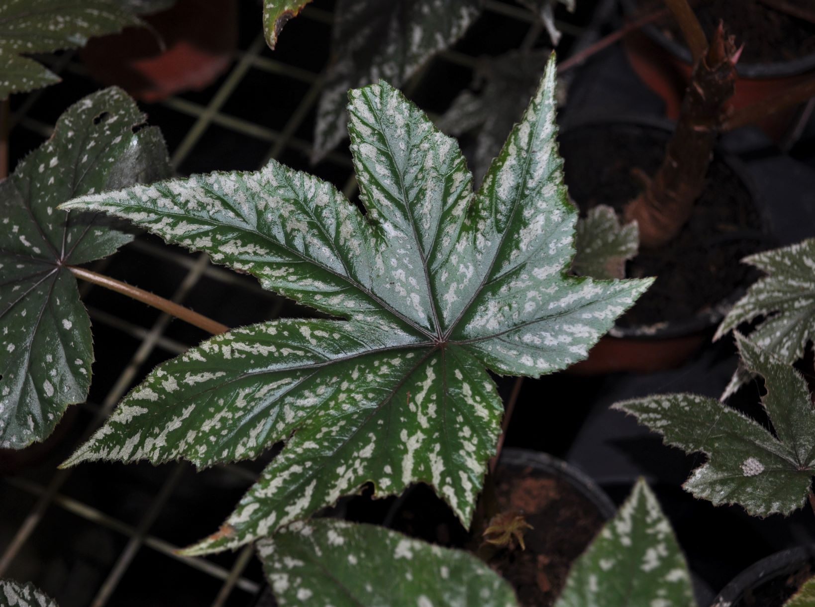 Begonia ‘Gryphon est un cultivar très attirant par son grand feuillage palmé, marbré de macules argentées. Il forme une touffe dressée, avec les tiges rouge foncé. Ses grandes feuilles lui donnent une allure tropicale immédiatement! A cultiver en intérieur, ou extérieur pendant la belle saison, et rentrer l’hiver.