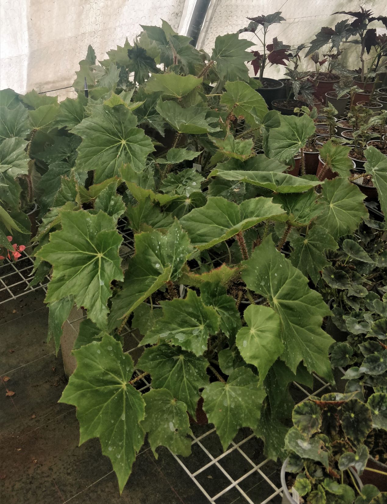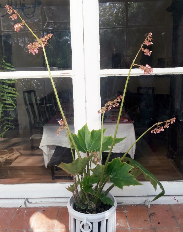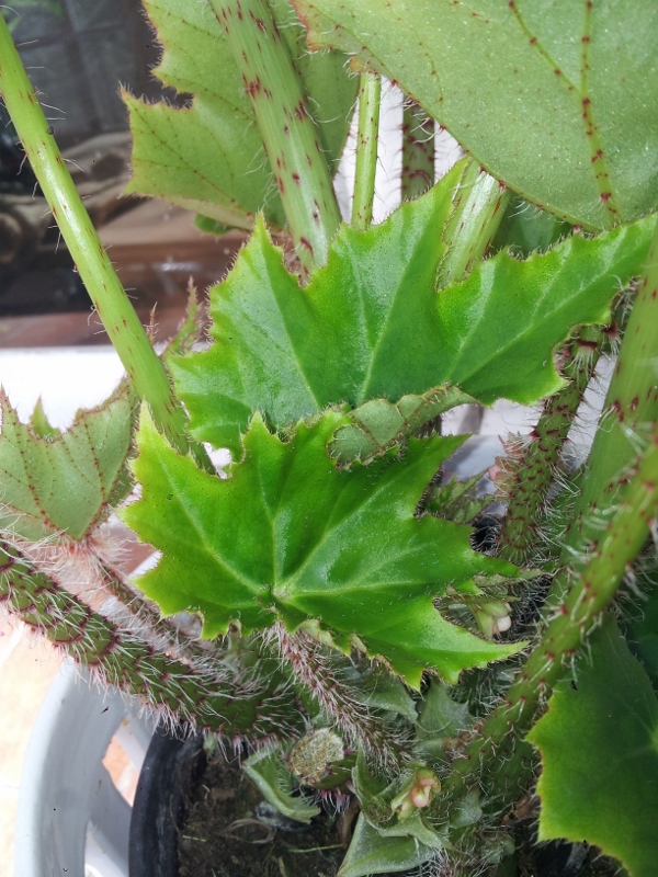 Ce bégonia rhizomateux forme une rosette de feuilles qui peuvent atteindre 1 m de diamètre. D’où son nom commun de ‘Gunnera d’intérieur’. Les écailles rouges le long du pétiole sont de toute beauté! Culture facile, en intérieur ou véranda hors gel. A rempoter dans un pot de grande taille pour que la plante fasse de grandes feuilles.