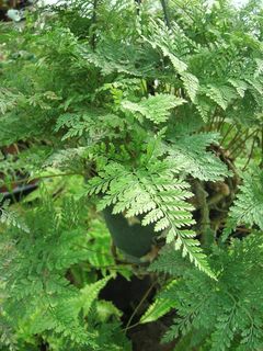 (= Davallia trichomanoides, bien que ce nom commercial recouvre plusieurs espèces). Une des fougères patte de lapin, tapissante à rhizome fin (+/- 5mm) recouvert d’écailles beiges fines (c’est ce qui vaut le nom à la sous-espèce). Les frondes sont plus graciles dans cette sous-espèce que chez le type. Très jolie plante de véranda ou d’intérieur, qui se comporte de plus très bien ici au jardin, où il est installé depuis des années au pied d’un arbuste buissonnant. Période de repos pas ou très peu marquée. Persistant si hors gel. Caduque à environ -5°C.
