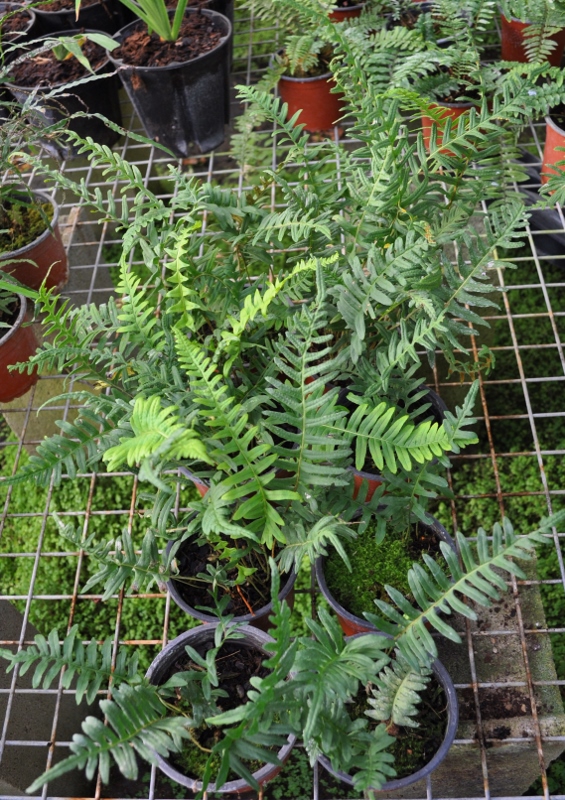La « réglisse des bois » est une vigoureuse espèce tapissante de sous-bois. Elle est à végétation estivale, et à feuillage coriace. Elle s’étend lentement au moyen de ses rhizomes ramifiés. Le mélange de cette espèce avec Polypodium cambricum donnera une touffe toujours verte.