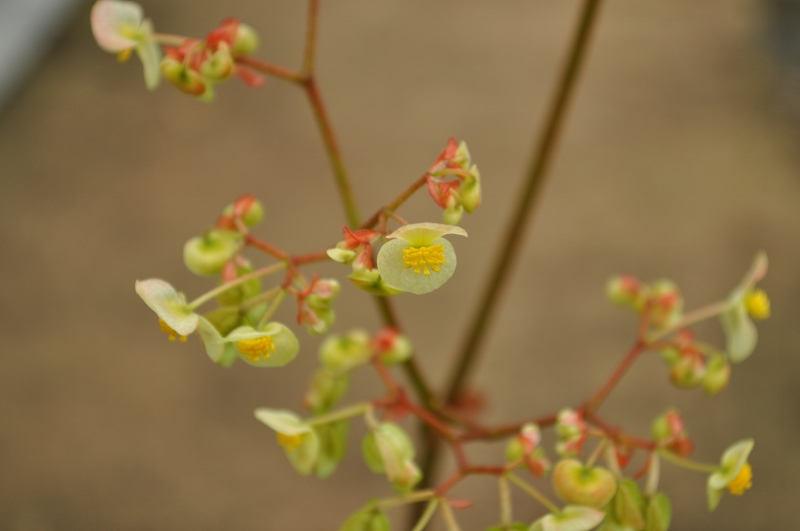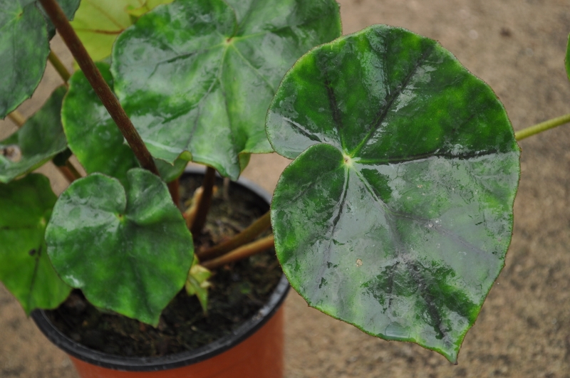 ‘= Begonia hidalgensis, Begonia nigrovenia, Begonia dayi. Ce Begonia rhizomateux forme une touffe dense de feuilles charnues vert foncé, ourlées, avec nervures principales noires. Les inflorescences automnales et hivernales passent au dessus du feuillage, et sont d’une curieuse couleurs jaune orangé. Ce très original Begonia est de culture facile, et ne demande pas beaucoup d’entretien… et surtout pas trop d’eau!