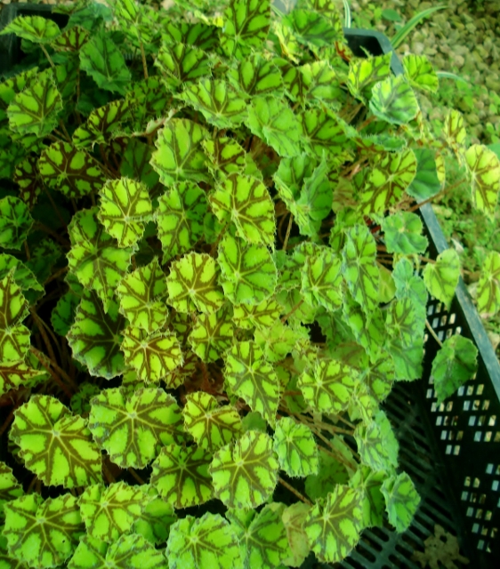 Ce Begonia rhizomateux a des feuilles de 5 à 7 cm de long, ovales, et un port compact en touffe. Les feuilles vert clair irisé ont des nervures bordées de vert foncé. Excellent en appartement ou en véranda. Floraison blanche en hiver. Culture facile. Persistant. Garder à + 5°C mini en réduisant les arrosages en hiver.