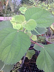 Récolté au Bengale occidental, vers 1200 m d’altitude. Cet arbuste à feuilles duveteuses s’épanouit depuis des années sur le mur végétal de Patrick Blanc à Paris. Les superbes feuilles duveteuses ont une pointe étroite et allongée (acumen) très marquée (-> 7 cm ici). Planté au jardin depuis 10 ans, ce Boehmeria platyphylla disparaît l’hiver, mais redémarre très bien à partir de la souche.