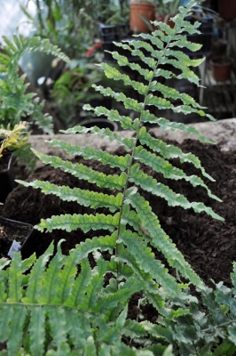Voici une espèce au port étalé assez unique dans notre gamme. Elle forme des touffes qui grossissent lentement. Le limbe large est caractérisé par les sores marginaux très visibles même par dessus. Le feuillage est original par sa forme allongée et les pennes arrondis, ondulés sur les bords. Rustique dans le sud de la France.