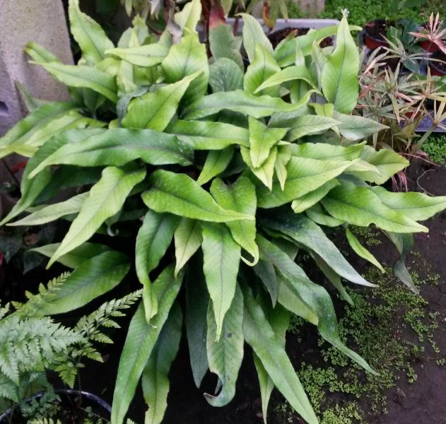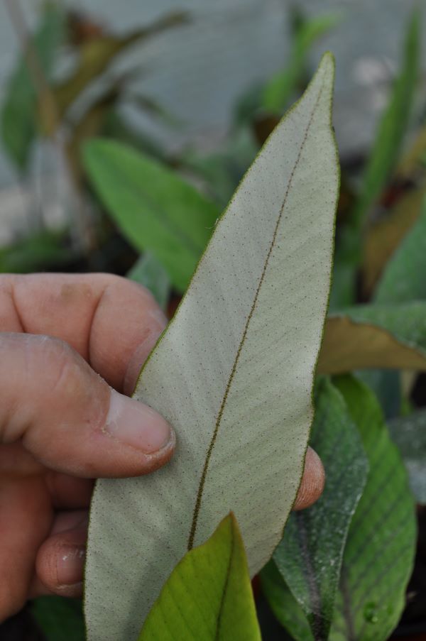 La forme “similis” de Pyrrosia lingua a le même comportement de couvre-sol tapissant que Pyrrosia lingua type. Les nervures sont beaucoup plus visibles et vert foncé. Les frondes sont aussi un peu plus ovales que le type. Cette souche provient de spores ramenées du Yangshuo en Chine. Cultivé en extérieur (zone 9) depuis plus de 20 ans. Culture facile, mais lente, comme tous les Pyrrosia.