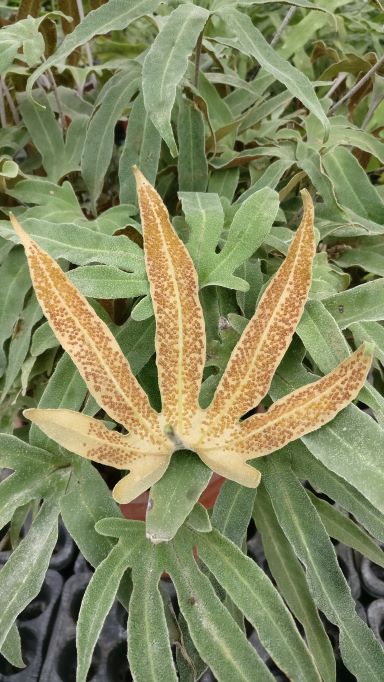 Splendide fougère endémique de Taïwan, au port en rosette, et aux frondes pédalées, composées de 6 à 8 lobes. Depuis plus de 15 ans cette espèce est testée dans le jardin, où elle prospère sans protection en sol argilo-calcaire humifère. La plante a un aspect vraiment unique, avec ses frondes épaisses, veloutées, et au revers roux. Croissance lente, culture facile.