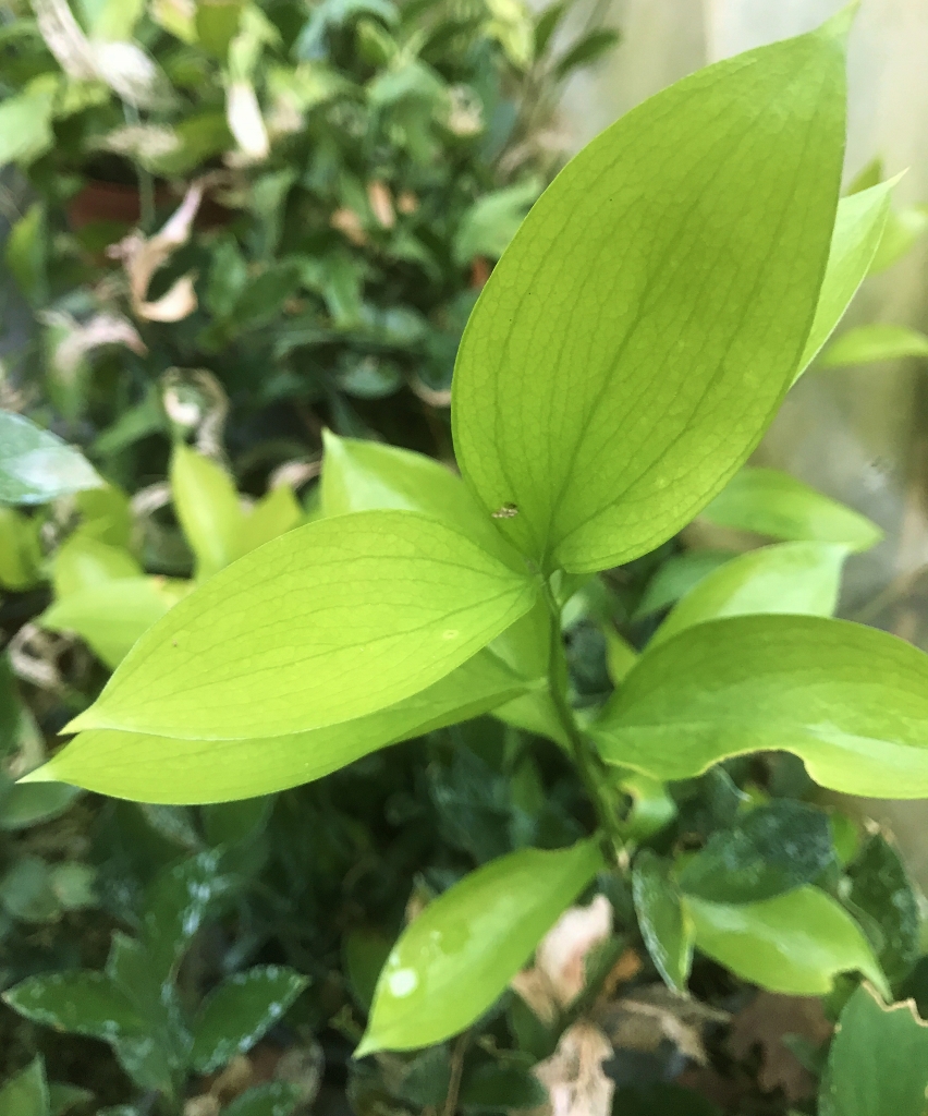 Buisson toujours vert, à branches vertes, et “feuilles” (= rameaux aplatis = cladodes) vert foncé brillantes. Le port est dressé et dense, atteignant 1 m. de haut. Les fruits rouges portés au centre des cladodes restent décoratifs tout l’hiver. Plante adaptée aux périodes sèches méditerranéennes. Peu d’entretien. Convient bien en potée. Croissance automnale.
