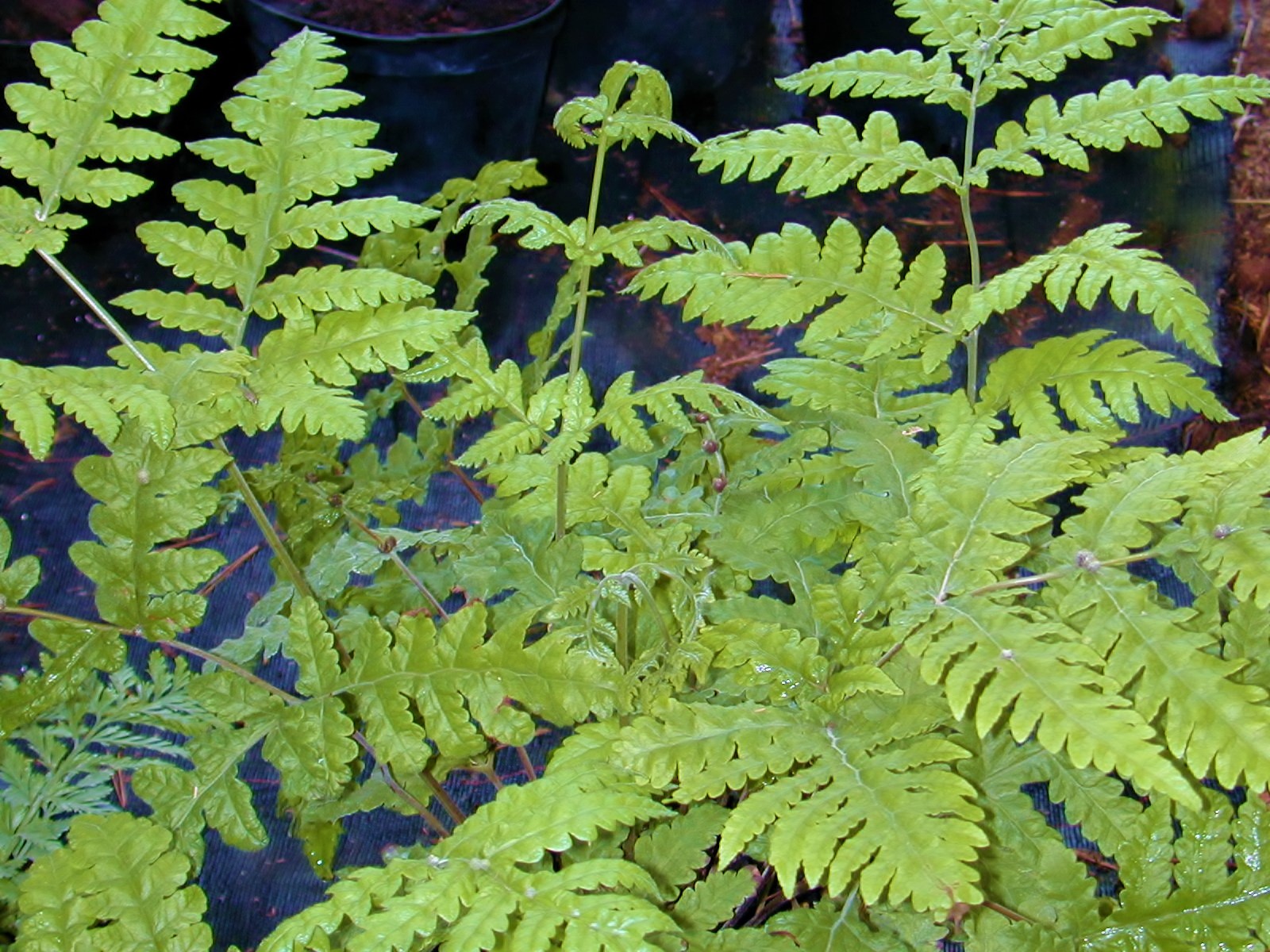 Voici une grande fougère d’intérieur ou de véranda, portant des bulbilles de reproduction végétative sur les frondes. Elle forme une touffe dressée avec des limbes étalés, de forme triangulaire deux fois pennées, avec une texture papyracée pas courante. Croissance rapide pendant la belle saison (sol riche, humifère). Les bulbilles tombent au sol et germent immédiatement.